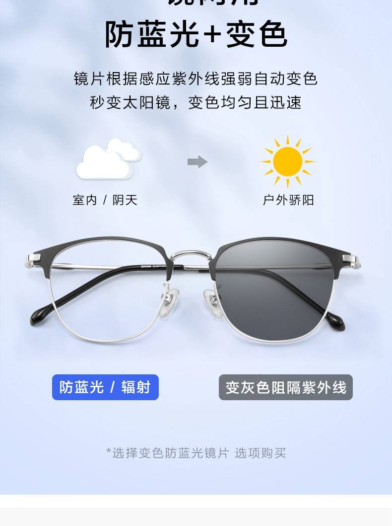 颜色分类: 银框 黑框 金框 枪框 专属私人定做 【 配镜享顺丰包邮】下单即送防雾眼镜布 镜框+防蓝光镜片【备注镜框颜色、配镜数据】顺丰包邮 镜框+变色防蓝光镜片【变灰/变蓝/变粉】顺丰包邮 正品保障,一年质保!7天免费试戴