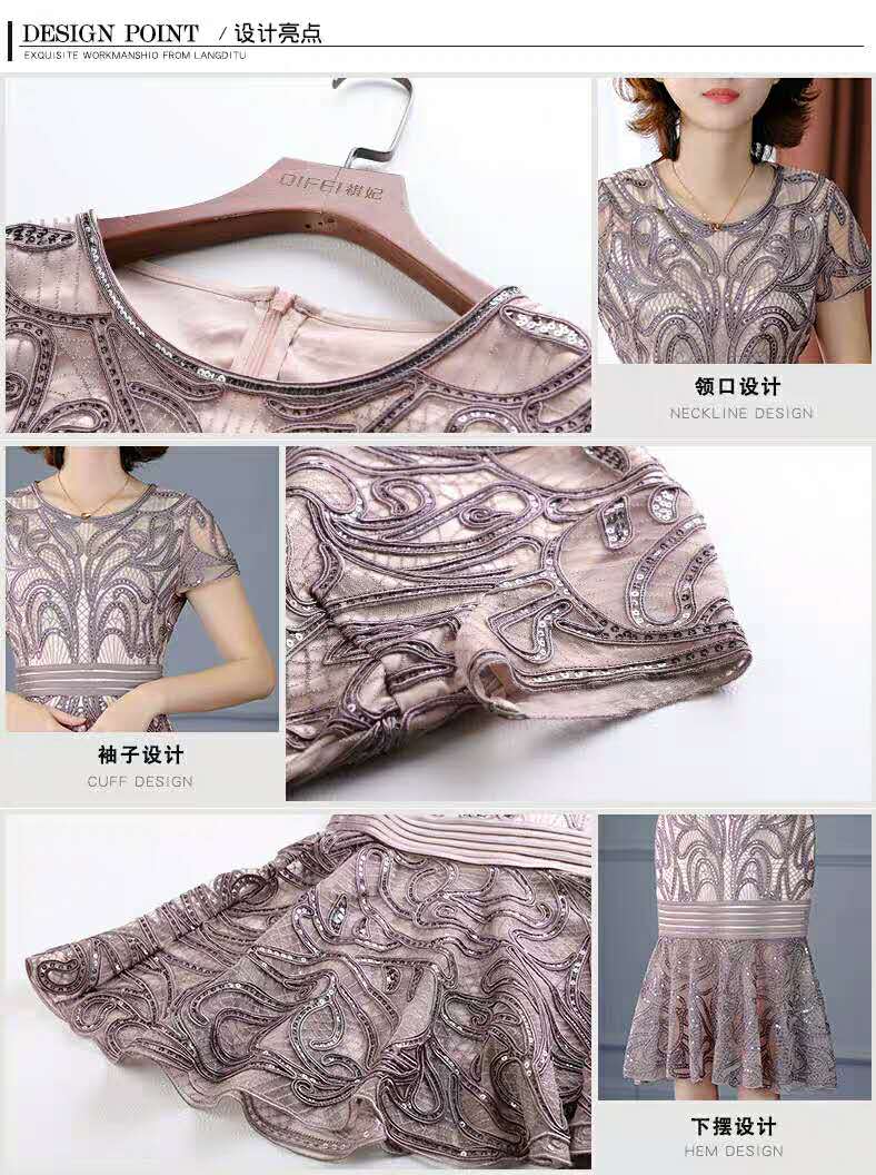 高贵气质妈妈短袖晚礼服参加宴会欧洲站时尚修身大码连衣裙鱼尾裙