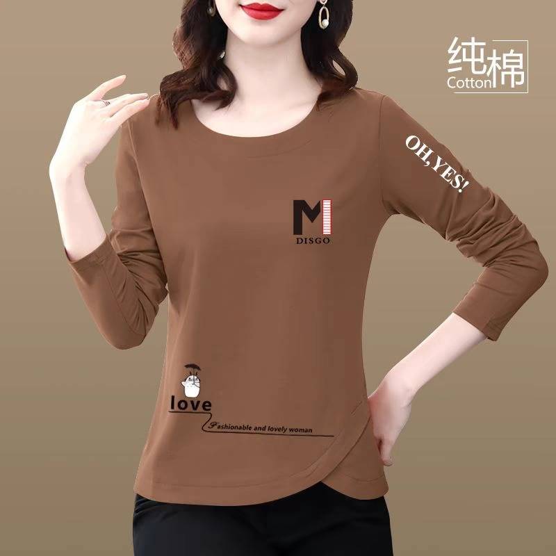 ‘‘欢纯棉长袖t恤女遮肚子上衣春秋款打底衫女时尚洋气减龄秋衣女外穿