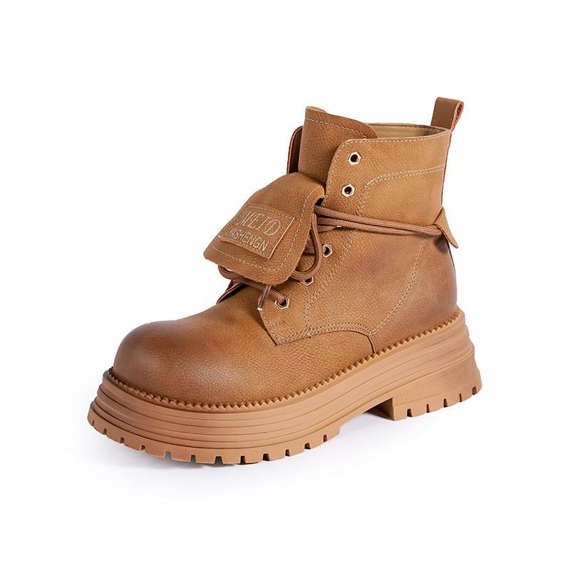 厚底短靴2024秋新款可翻前系带擦色马丁靴新款秋冬百搭机车靴女靴