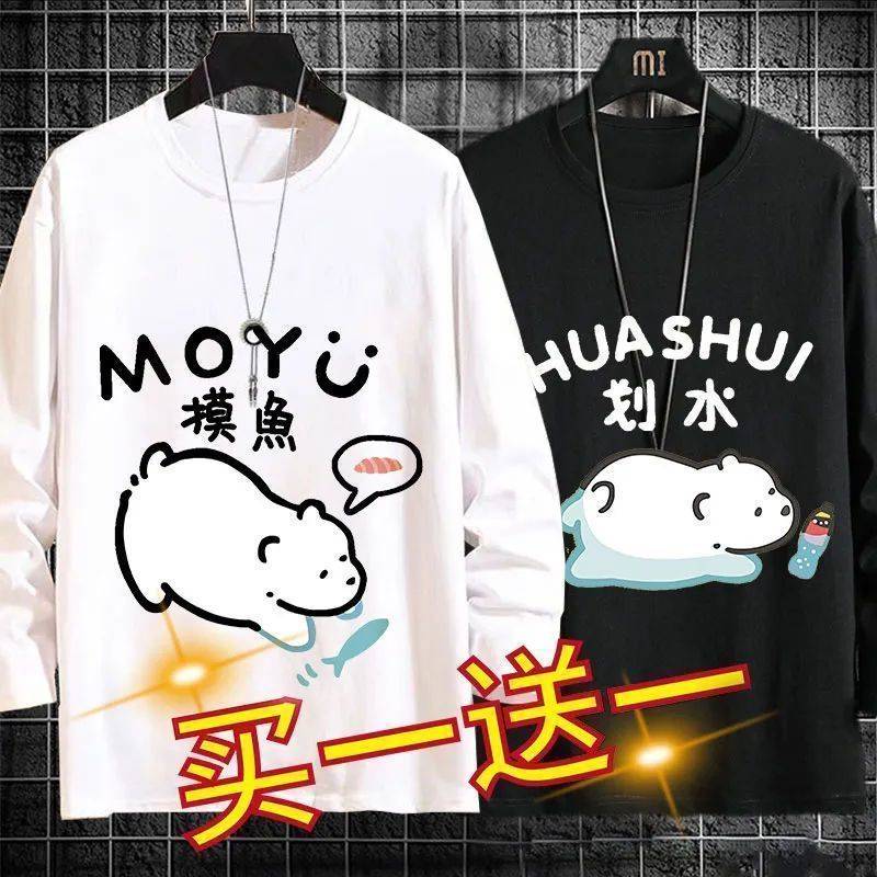 2025新款摸鱼长衫男秋冬国潮两件装宽松圆领