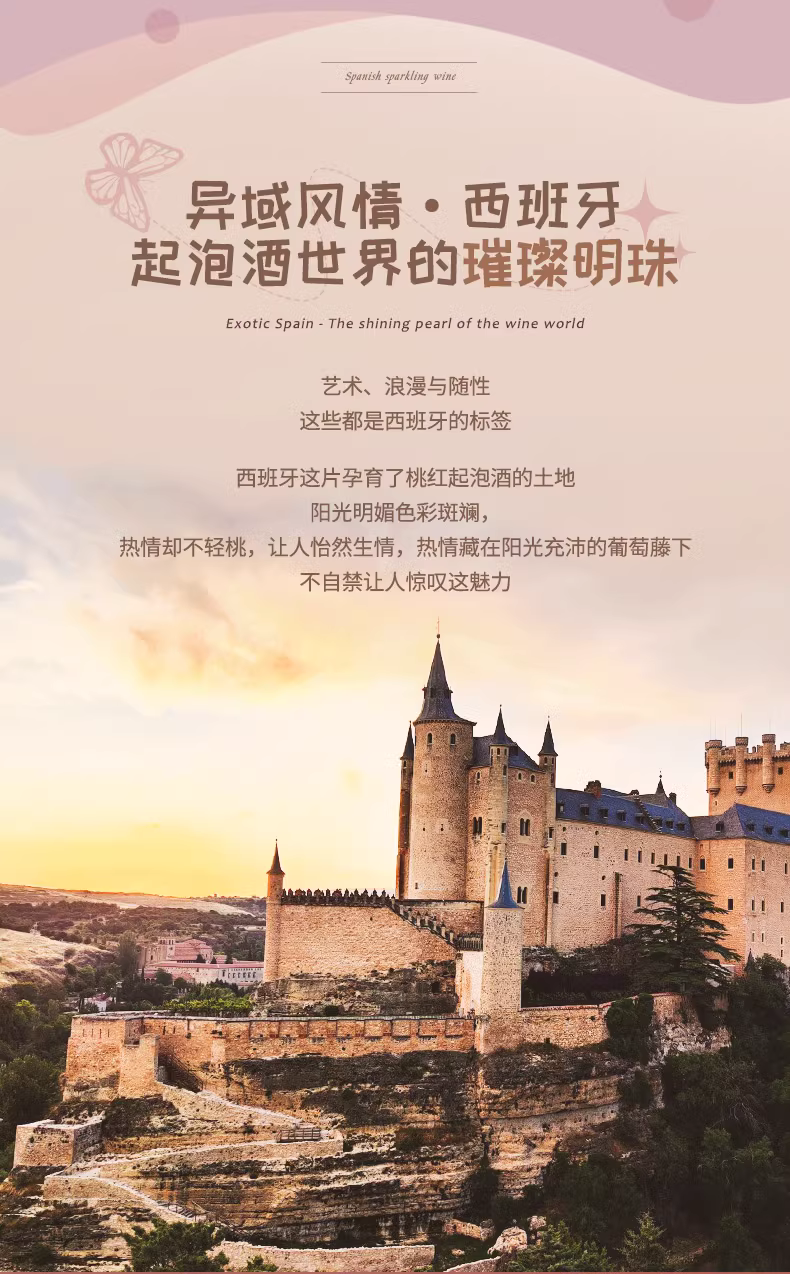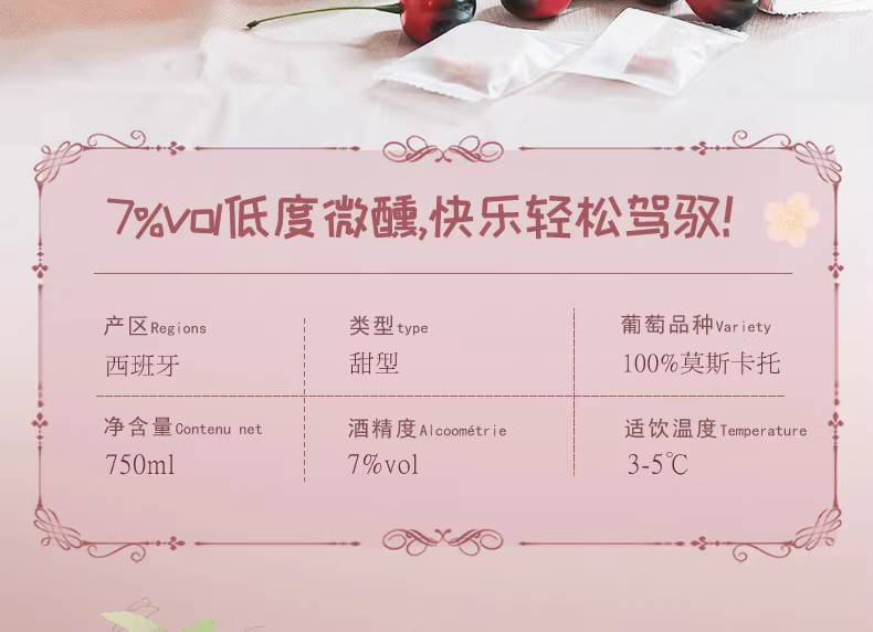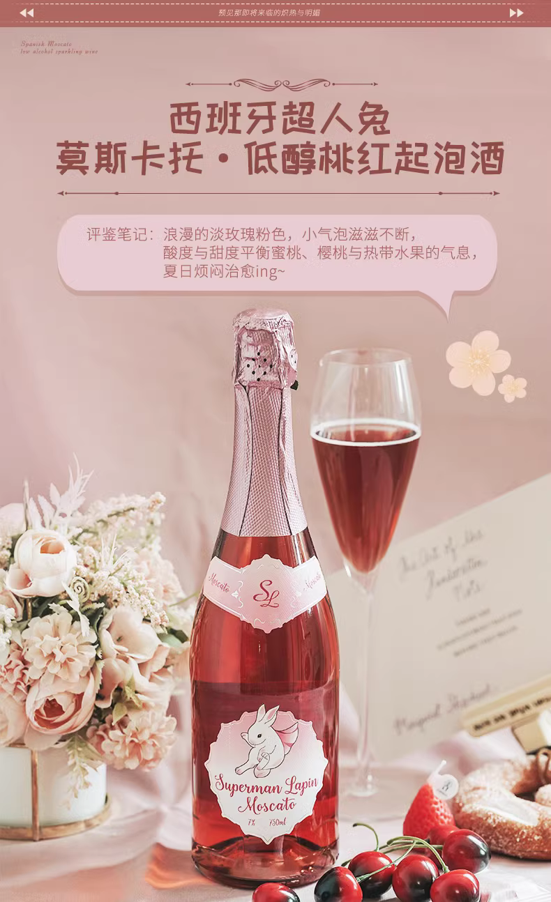 西班牙莫斯卡托起泡酒甜白葡萄酒女生桃红气泡酒赠香槟杯