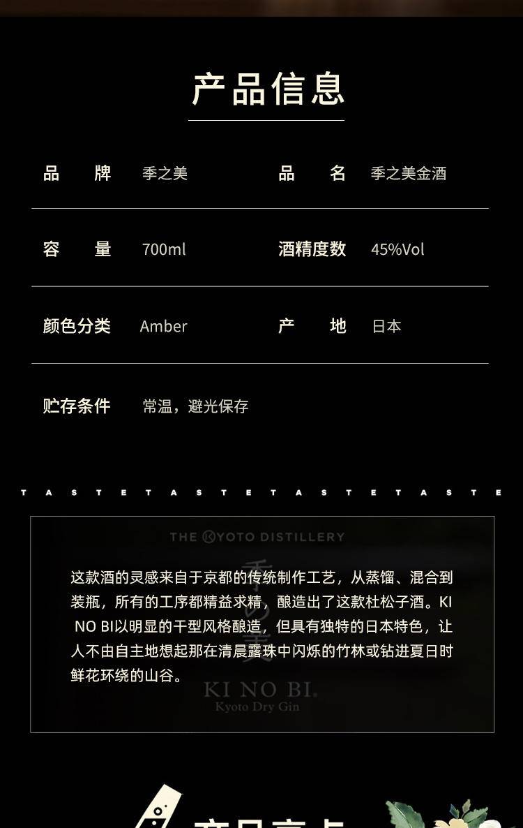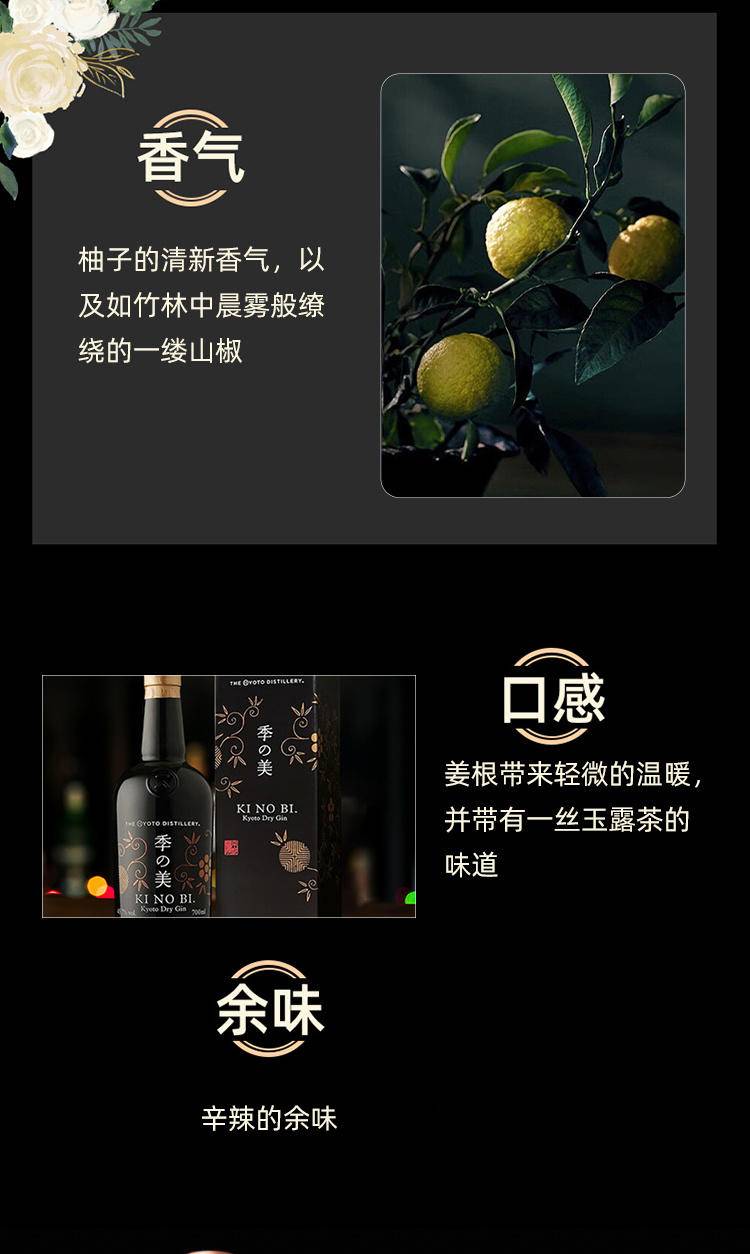 日本直邮KINOBI季之美金酒礼盒杜松子酒口感柔顺香气独特 700ml