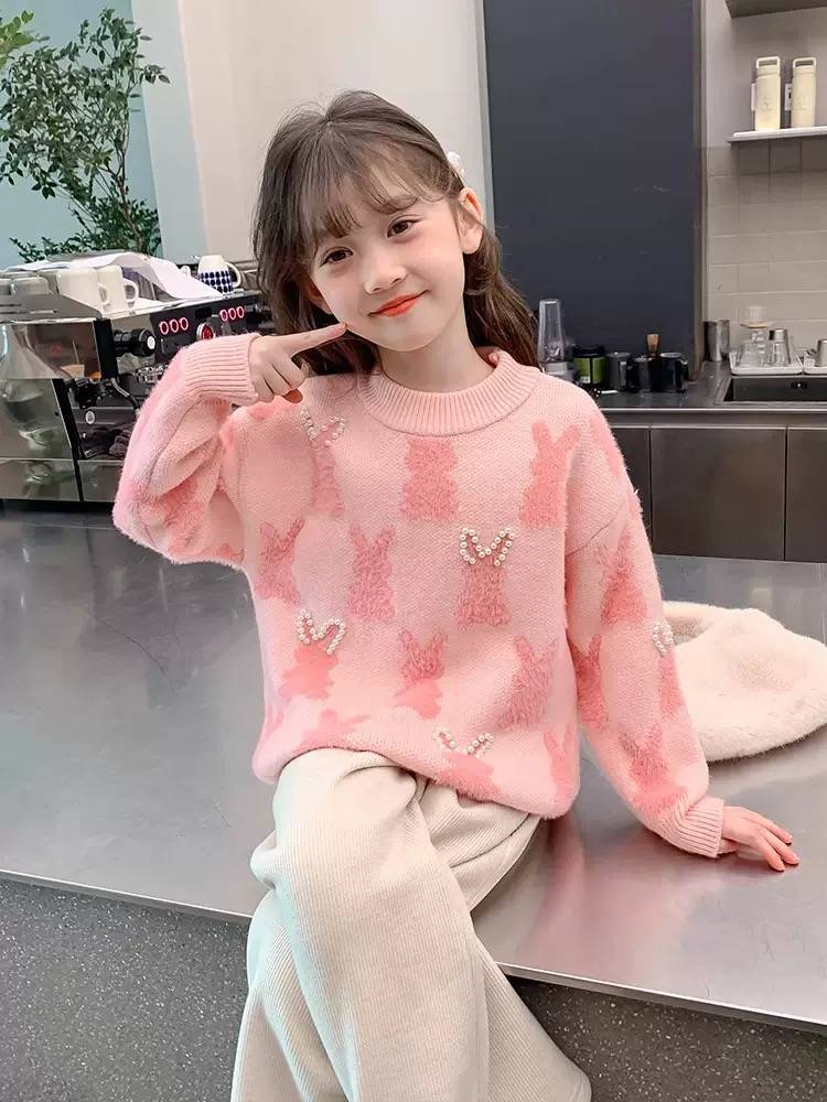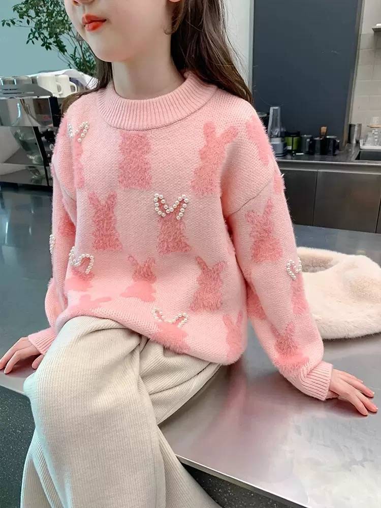 女童针织毛衣秋冬装2024新款儿童加厚冬季打底衫小女孩线衫大童