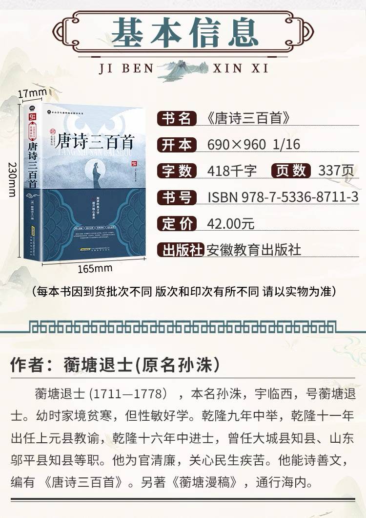 唐诗三百首 正版原著完整版简爱九年级上册必读名著配套人教版初中生唐诗300首全集详析全解非人民教育出版社老师推荐文学课外
