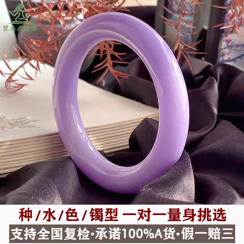 翡翠冰糯种春带彩紫罗兰翡翠手镯天然缅甸满紫浓紫玉手镯子 1000.00 已售:0件
