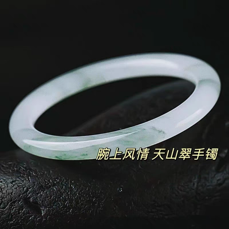 新疆天山翠手镯天然翡翠色圆条玉镯正圈冰种白月光手镯女士首饰品 1000.00 已售:0件