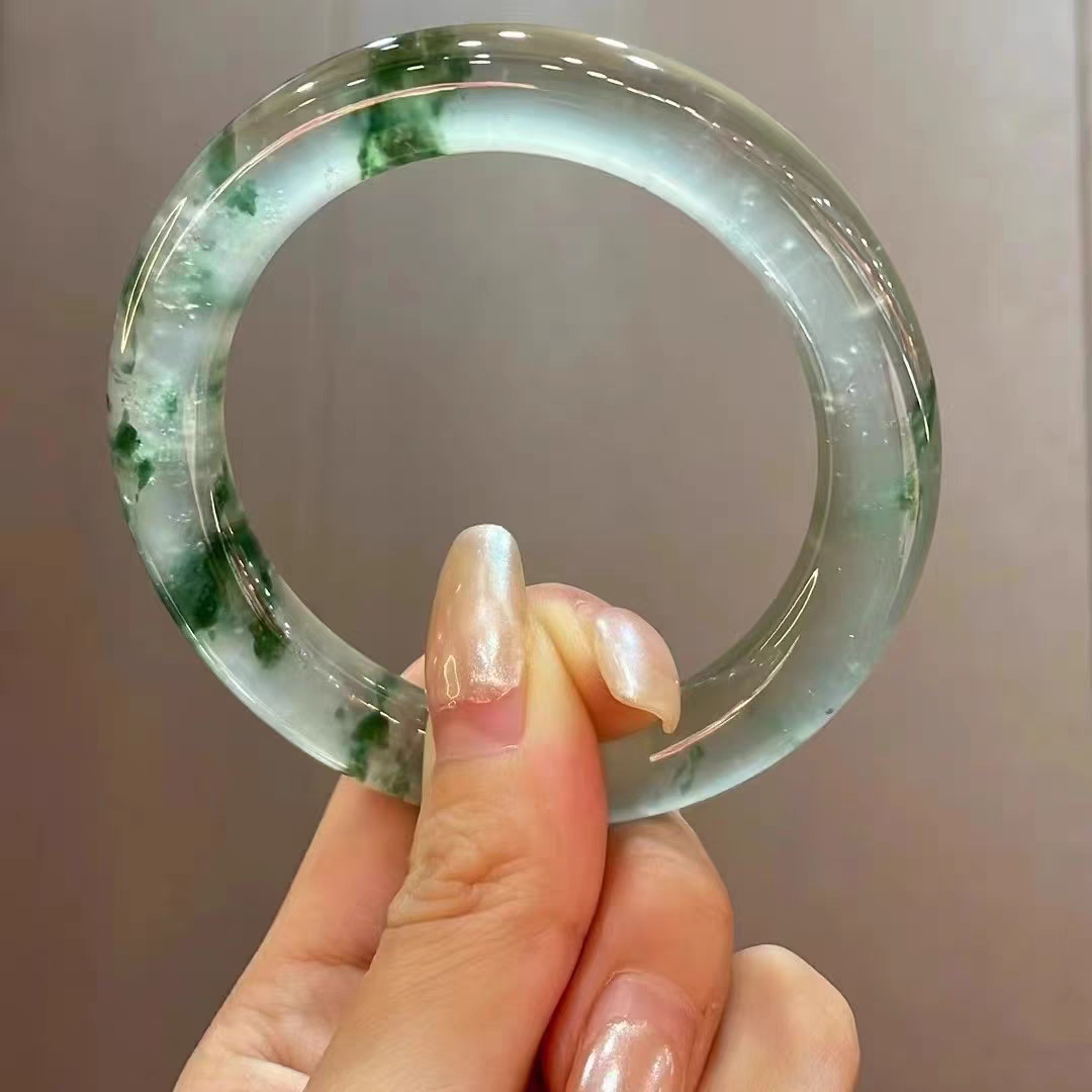 玻璃种阳绿飘花半山水天然翡翠手镯缅a级正品圆条贵妃玉镯子女式 6000.00 已售:1件