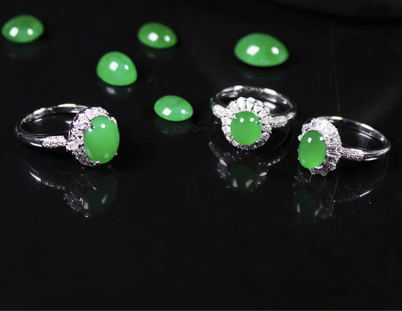 天然a货阳绿翡翠戒指女冰种满绿蛋面裸石祖母绿玉戒面男18K金镶嵌 10000.00 已售:1件