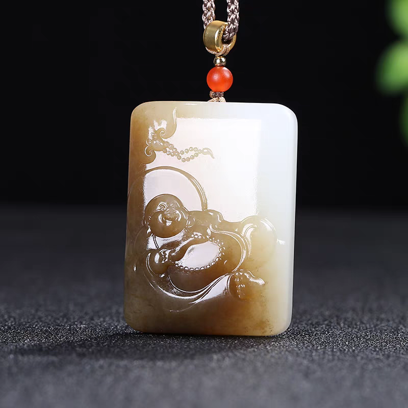 [佛引福来]新疆和田玉弥勒佛吊坠男女款玉牌且末料糖白玉天然玉石 2000.00 已售:0件