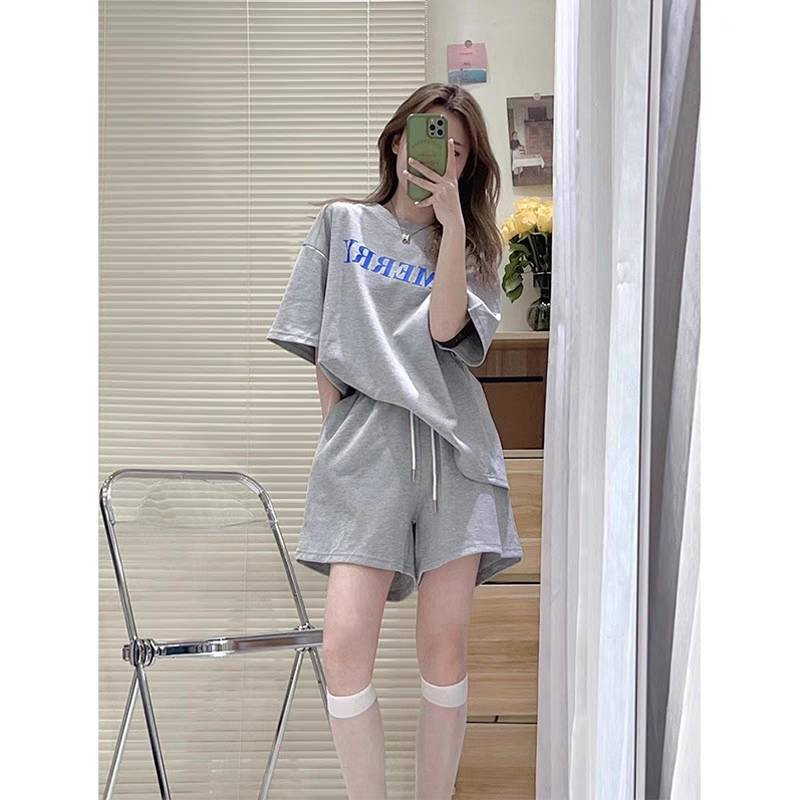 套装2023年新款女短袖t恤宽松运动阔腿短裤可盐可甜两件套夏装潮