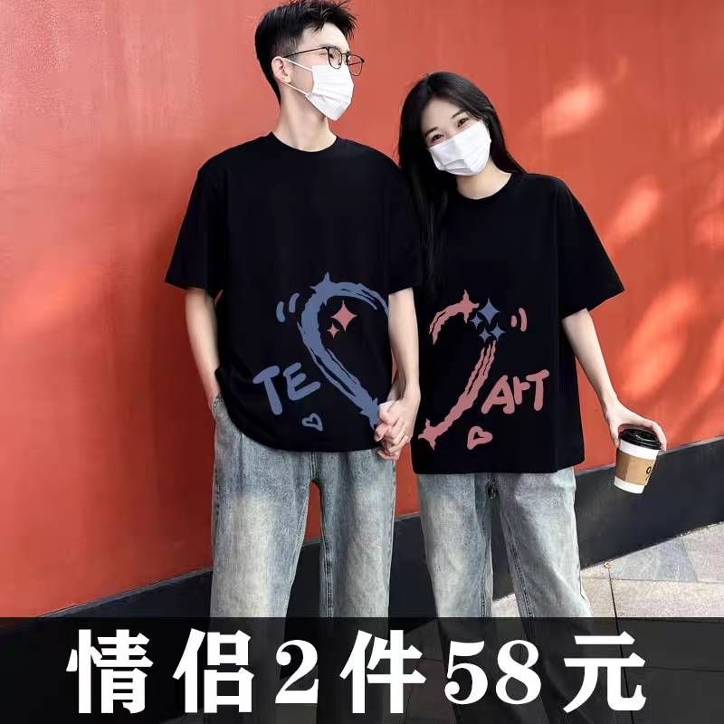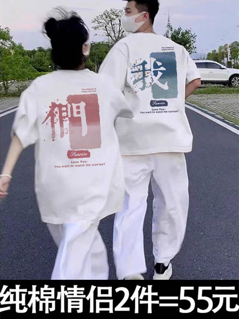 不一样的情侣装夏装纯棉短袖t恤小众潮牌高级感超火2023新款上衣