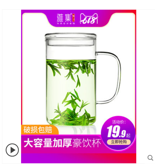 雅集大容量玻璃杯茶杯办公室绿茶水杯子泡茶杯子男士创意带盖把手 30.00 已售:0件