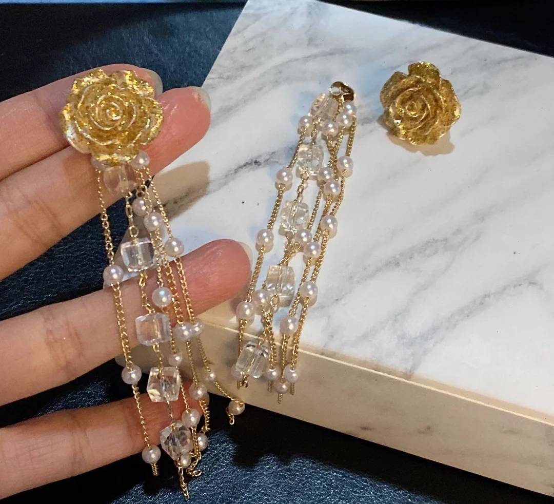 深海冥想&台北玫瑰vintage设计师款复古长链条珍珠耳饰s925 615.00 已售:1件