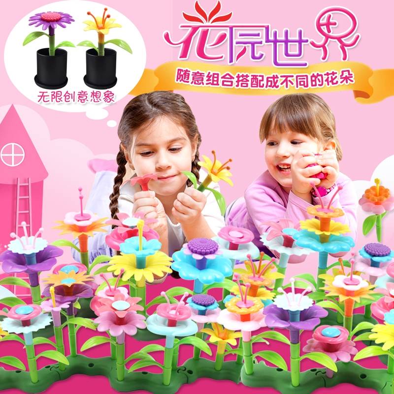 童商波普百变花园世界儿童diy手工早教益智拼装套装女孩插花玩 37.80 已售:0件