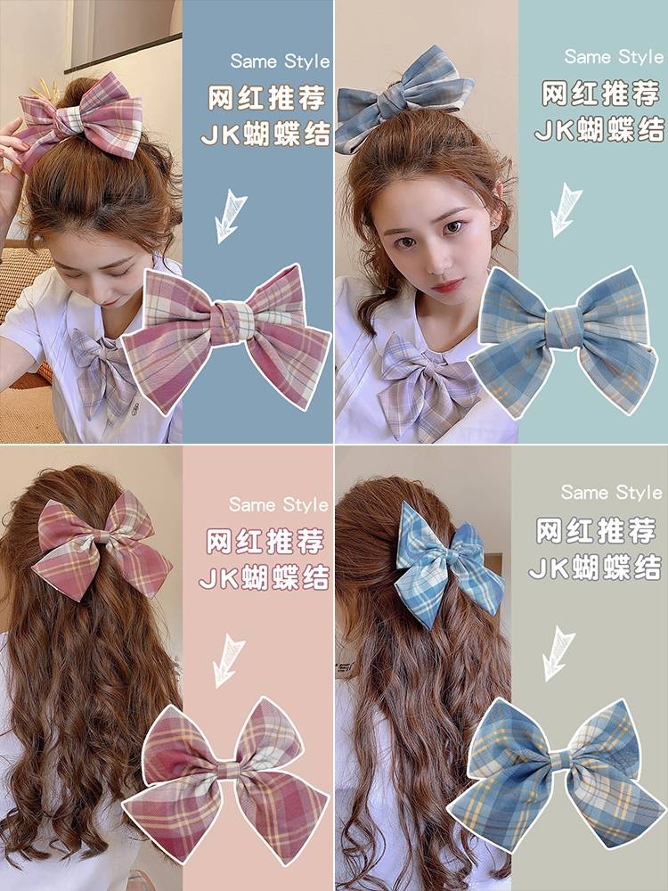 韩国ins网红大蝴蝶结发夹女超仙后脑勺jk头饰格子bm夹子顶夹发饰