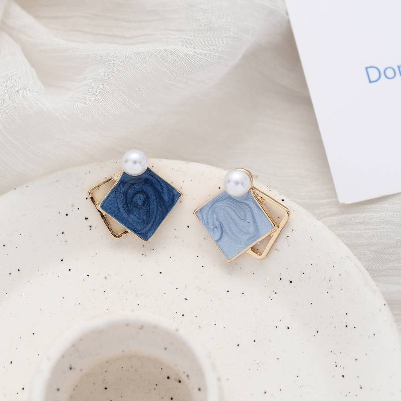 S925银针韩国创意撞色不对称耳钉港风气质耳环甜美珍珠耳夹女A100