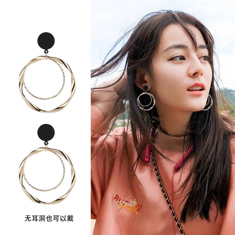 韩国东大门设计感耳环网红气质大环圆圈耳坠耳钉无耳洞耳夹耳饰女