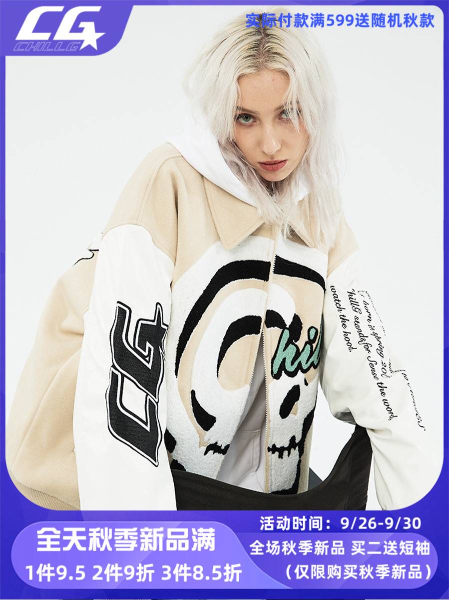 包邮CHILLG骷髅骨架毛巾刺绣拼接上衣夹克国潮vibe外套棒球服女 368.00 已售:1件
