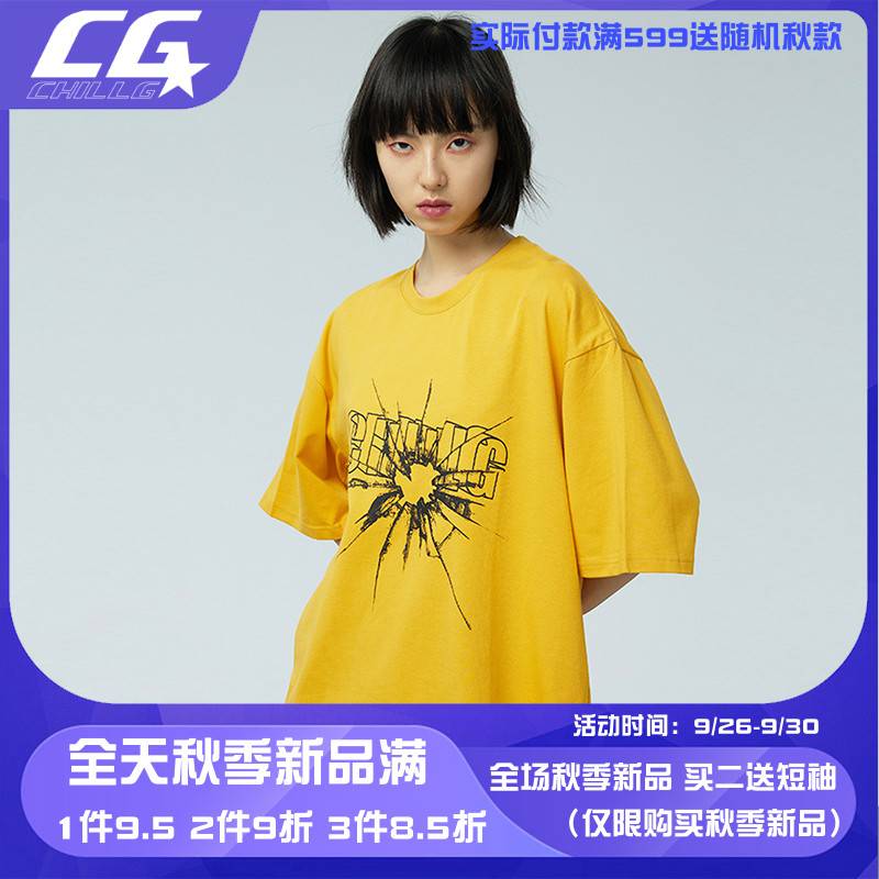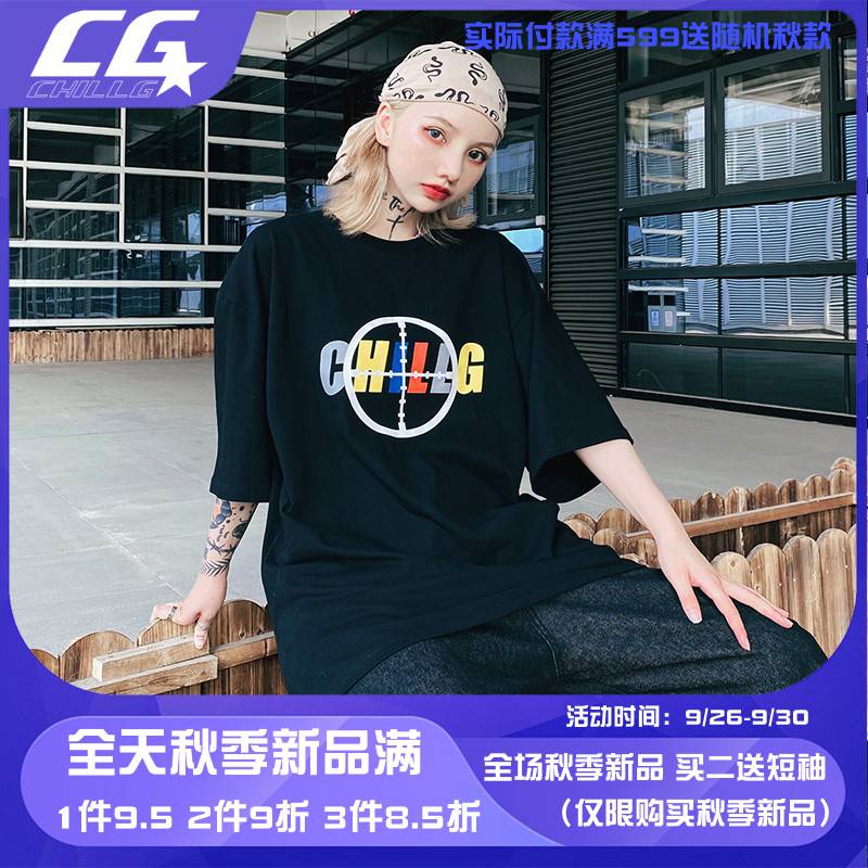包邮CHILLG 枪靶字母LOGO基础短袖休闲纯色半袖打底圆领男女款T恤 50.00 已售:0件