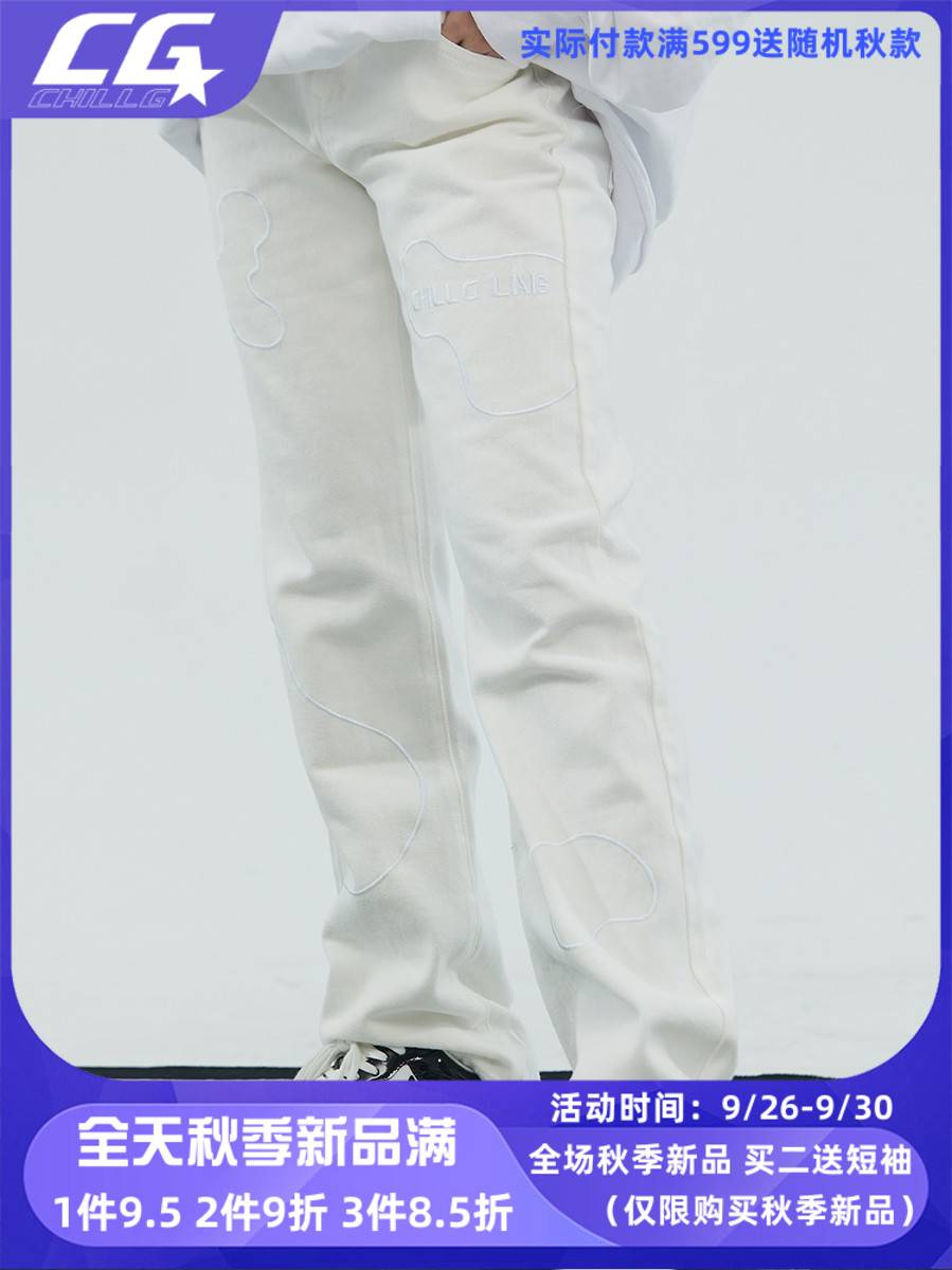 包邮CHILLG刺绣工艺2021夏季白色牛仔裤男女宽松辣妹裤子潮牌长裤 148.00 已售:0件
