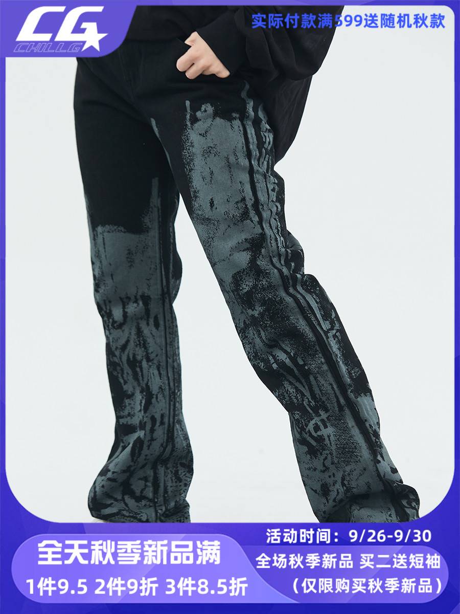 包邮CHILLG刷漆高街头国潮牌抽象印花牛仔宽松休闲百搭kiko裤女 188.00 已售:0件