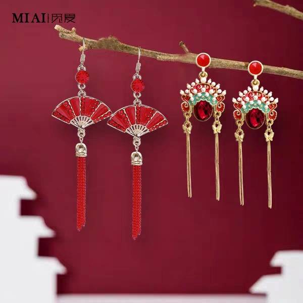 刀马旦复京剧脸谱耳环女中国风古风耳坠耳钉红色耳饰 28.80 已售:0件