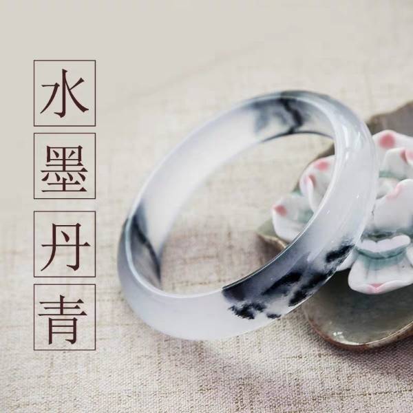 古风天然玉镯正品少女公主镯薄款透冰种手镯女款飘花水墨古装黑 99.00 已售:0件