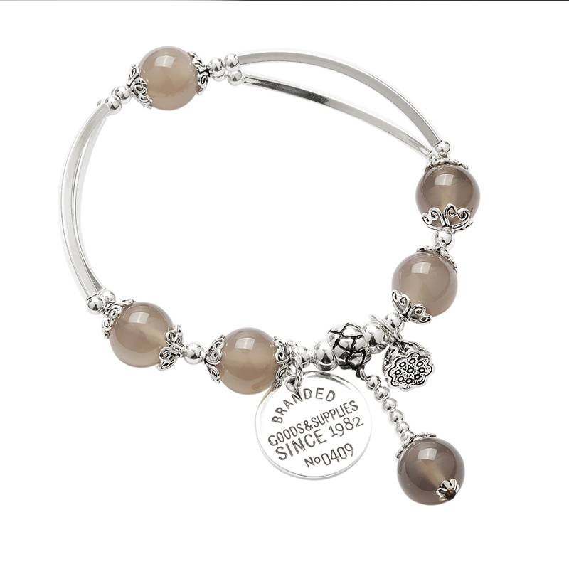 925纯银手链女 天然灰玉髓银牌莲蓬流苏单圈水晶手串饰品简约个性 228.00 已售:0件