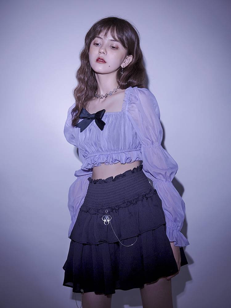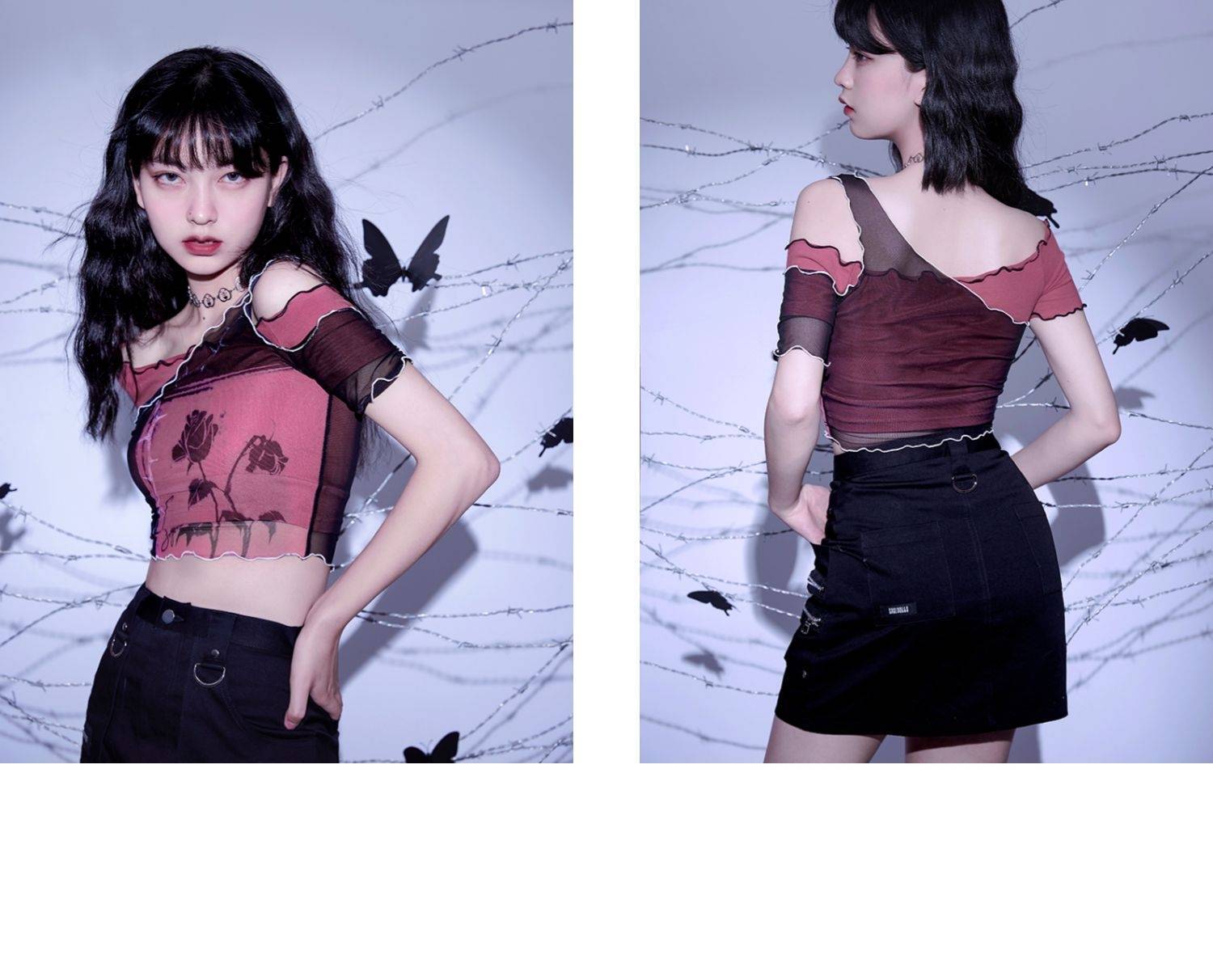 暗黑砖红玫瑰不对称网纱短袖 109.00 已售:0件