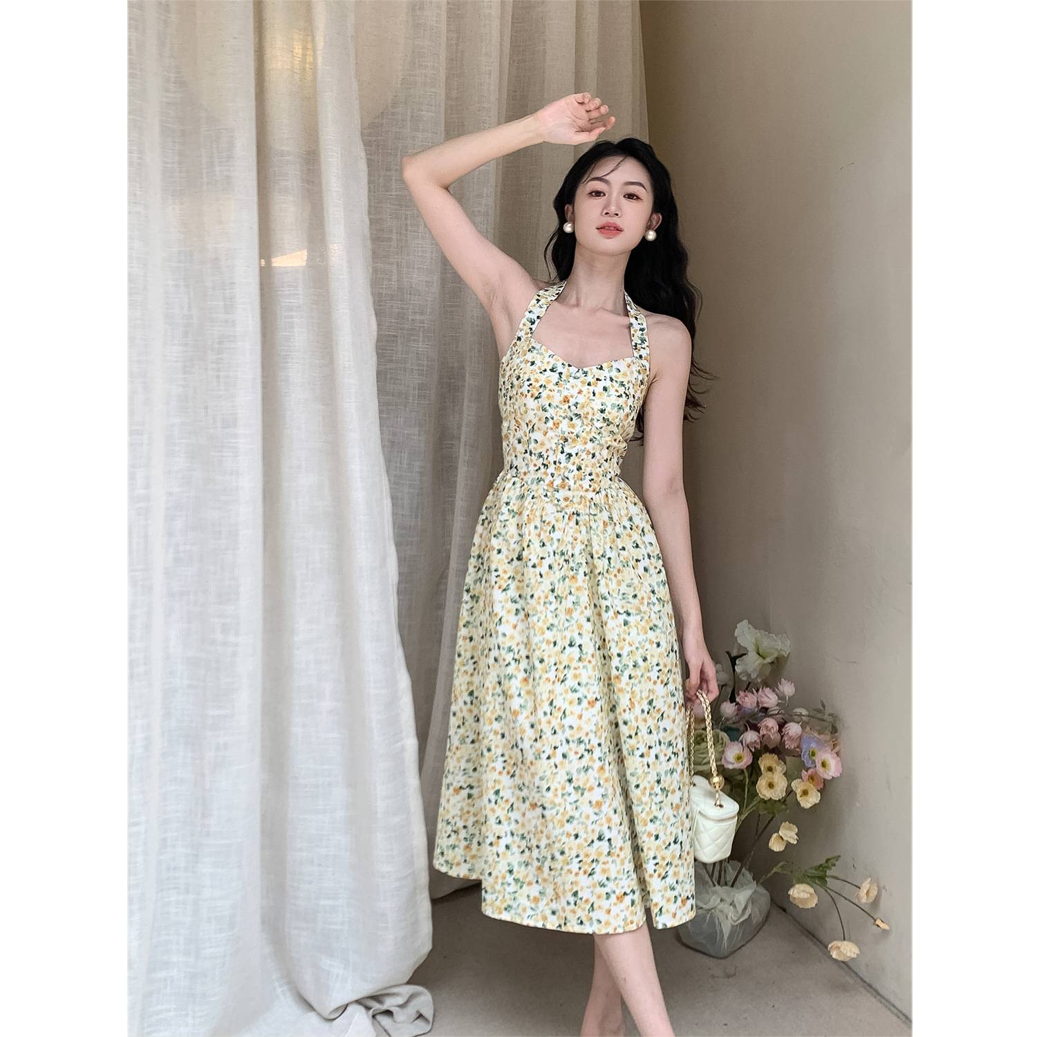 2022夏季新款法式优雅别致挂脖设计碎花吊带连衣裙女装 478.00 已售:1件