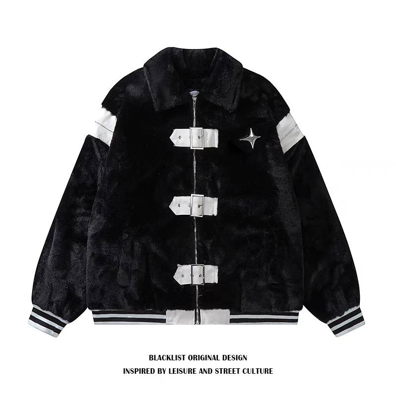 HMD美式原创皮扣oversize加厚毛绒外套高级感棉服男女同款冬季潮