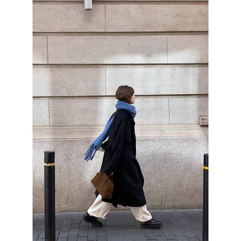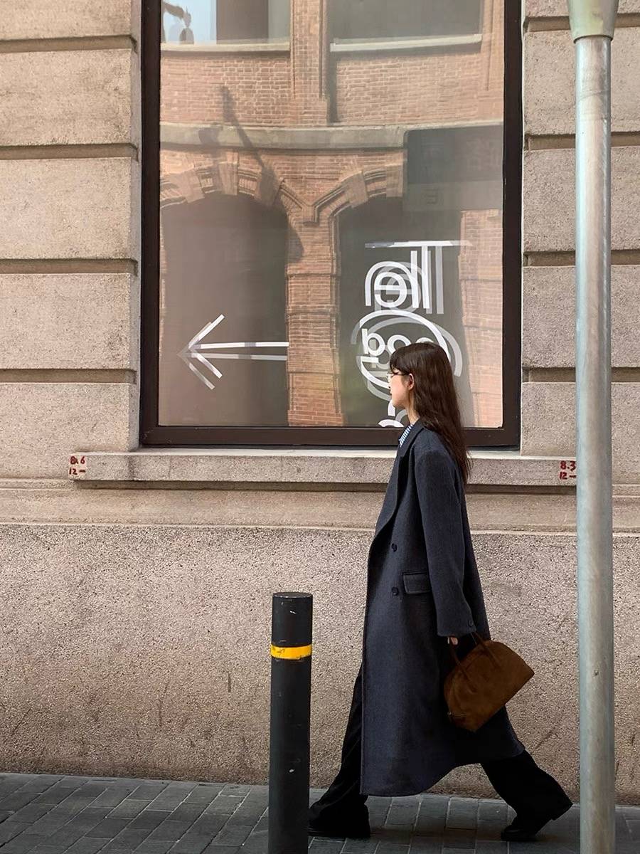 RAINY 韩剧女主*韩系羊毛西装领大衣秋冬女宽松直筒长款毛呢外套