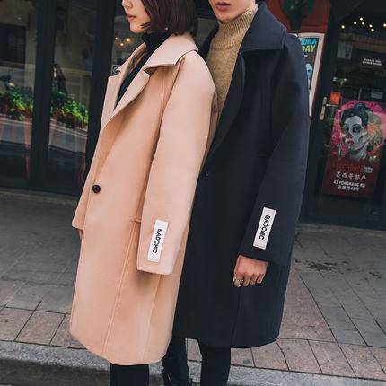 毛呢外套女中长款韩版2018新款学生宽松百搭大衣情侣装过膝风衣冬 306.00 已售:0件