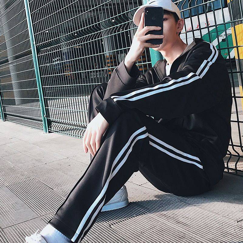 秋季男士韩版宽松开衫卫衣套装百搭青少年运动休闲条纹外套两件套 232.00 已售:1件