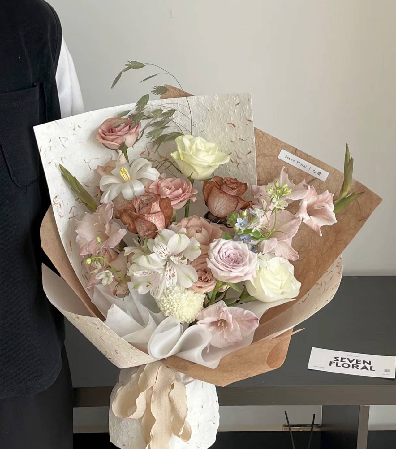 鲜花手捧花卡布奇诺熊抱袋永生花送女友情人节 199.99 已售:0件