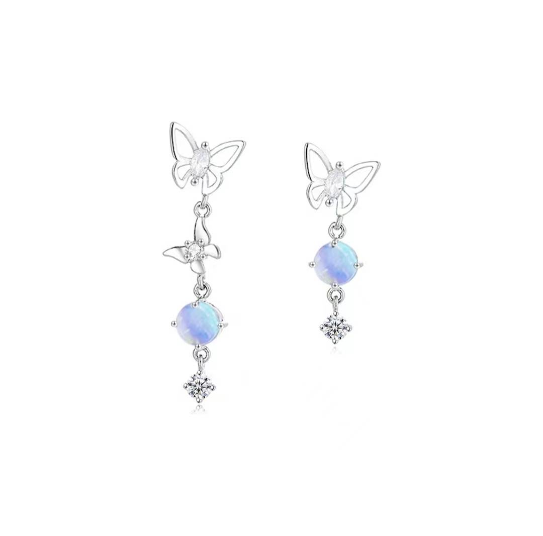 奈奈生卢森堡花园耳钉S925银花环蝴蝶小清新耳饰女款小巧甜美气质
