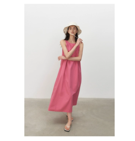 弗洛伊德玫瑰 高支高密进口棉夏日褶皱削肩无袖连衣裙女 398.00 已售:1件