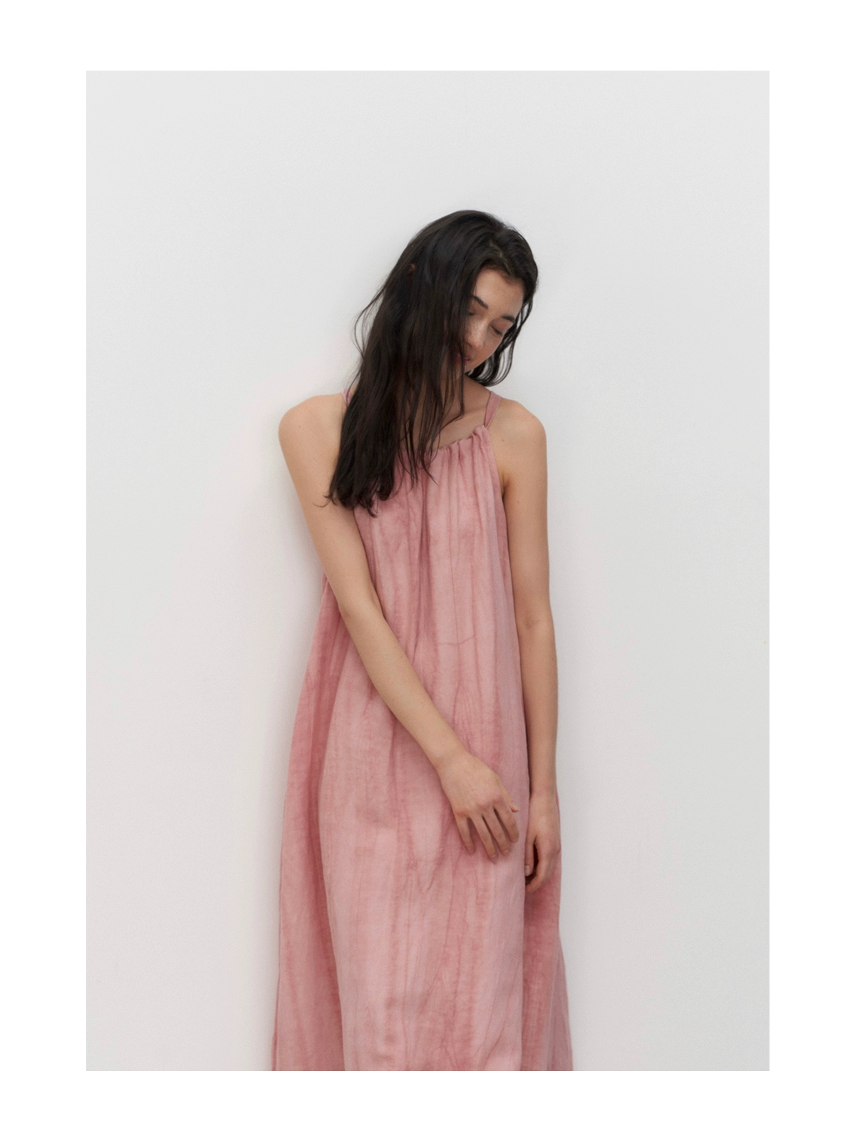 植物染亚麻吊带连衣裙女宽松显瘦大摆裙褶皱无袖削肩长裙 488.00 已售:0件