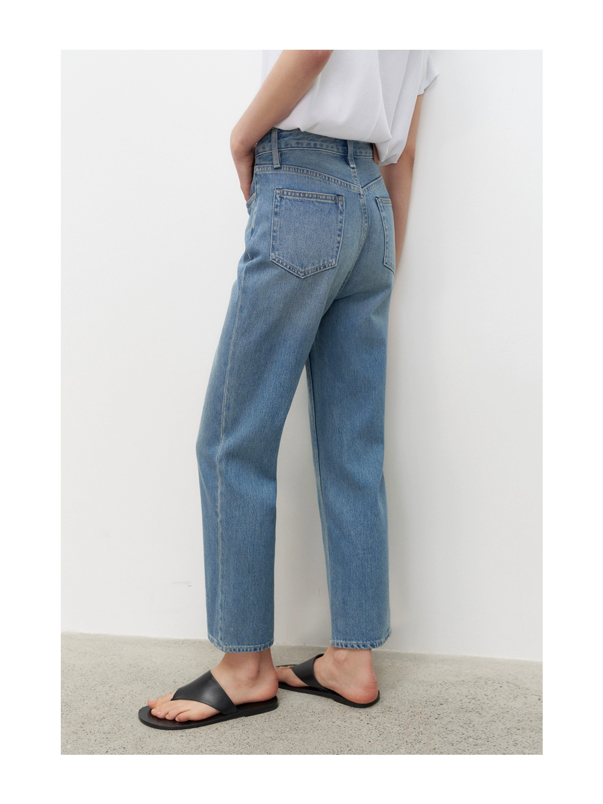 土耳其牛仔 全棉破缝须边高腰小直筒九分牛仔裤 298.00 已售:0件