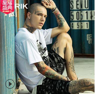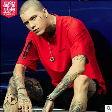 OLRIK2018春夏男式t恤 男士短袖嘻哈溜肩圆领oversize潮男装批发 98.00 已售:0件