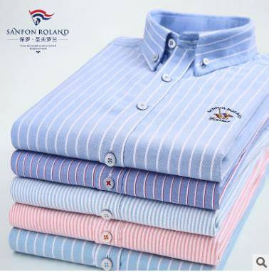 保罗圣夫罗兰2018春装新款 男士纯棉条纹长袖衬衫 中年休闲牛津纺 218.00 已售:1件