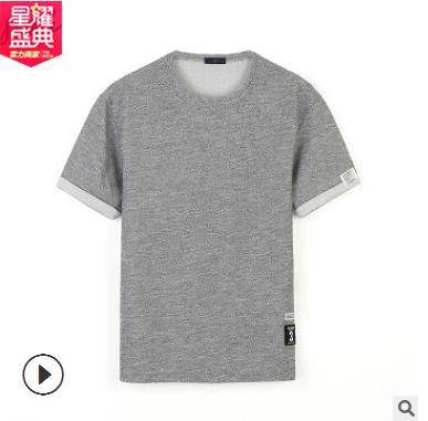 韩路 2018春夏男装男式t恤落肩宽松圆领半袖纯色打底衫休闲短袖 78.00 已售:0件