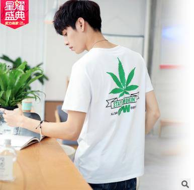 韩路休闲男装 2018男士t恤新款夏季叶子印花圆领短袖体恤打底衫 68.00 已售:1件