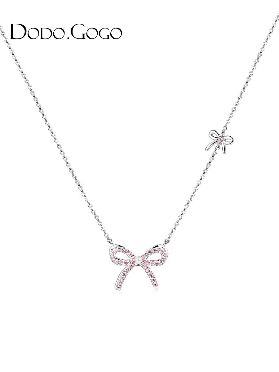 DODOGOGO粉色蝴蝶结项链女轻奢小众纯银锁骨链甜美高级感女款颈链 101.00 已售:0件