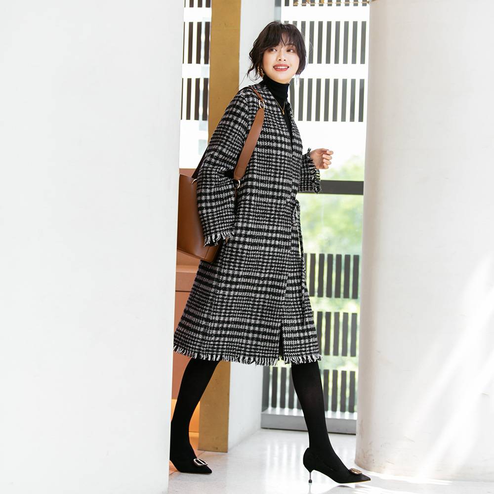 21秋冬新款宽松韩版格子长款流苏千鸟格羊毛大衣毛呢外套女2113 589.00 已售:26件