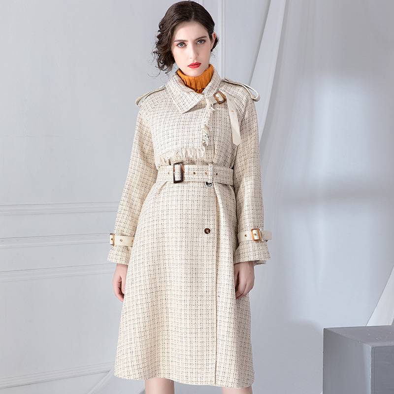 清仓千鸟格优雅 小香风翻领系带收腰显瘦长款大摆风衣女 699.00 已售:18件