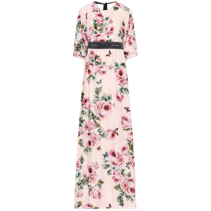 粉色花卉印花束腰长款 连衣裙 1500.00 已售:0件