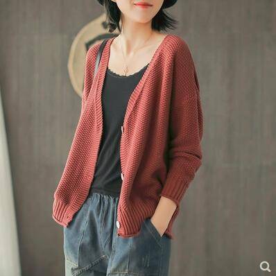 全棉线针织开衫女早春新款宽松大码慵懒风文艺上衣外套