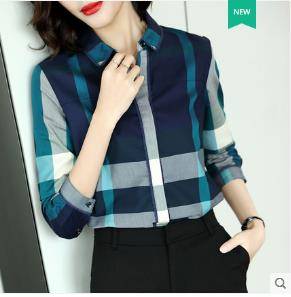 鹿歌2019春夏新款格子衬衫女洋气欧货修身显瘦百搭上衣长袖衬衣女